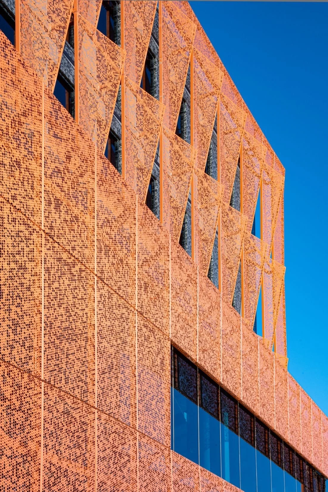 The daylight is a major key in the design. Thanks to the 4 lightwells that penetrate floors 3-5 and are covered with large translucent skylights. This innovative solution allowed the daylight to penetrate deep into the 50,000 sq.ft floor plate.